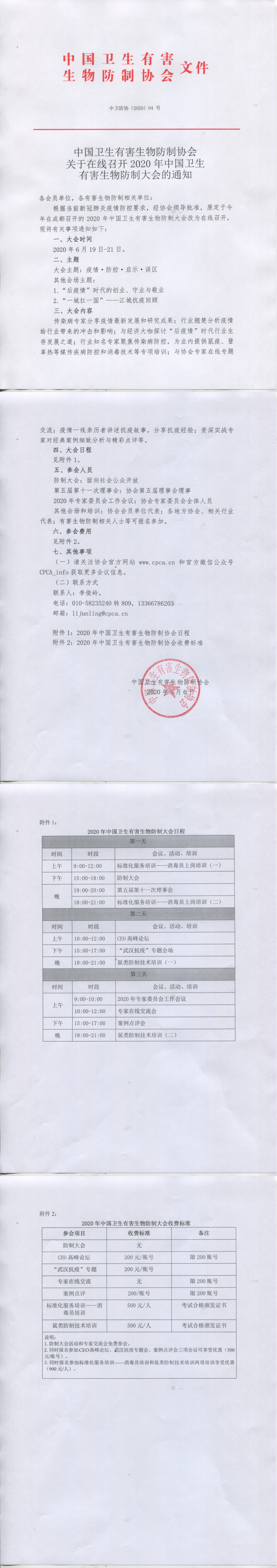 關(guān)于在線召開2020年中國衛(wèi)生有害生物防制大會的通知